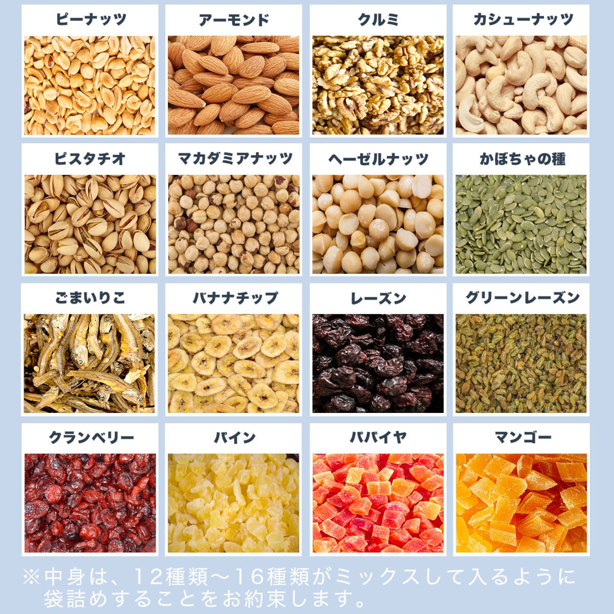 種類が豪華で豊富!約16種類のナッツ&フルーツをオリジナルでMIXしました。