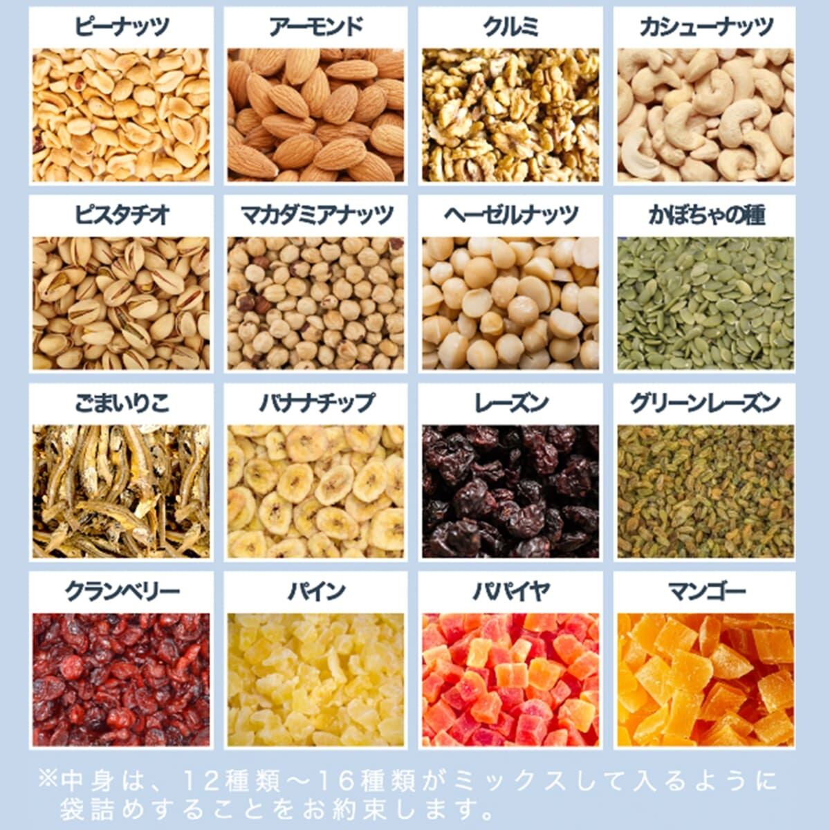 種類が豪華で豊富!約16種類のナッツ&フルーツをオリジナルでMIXしました。