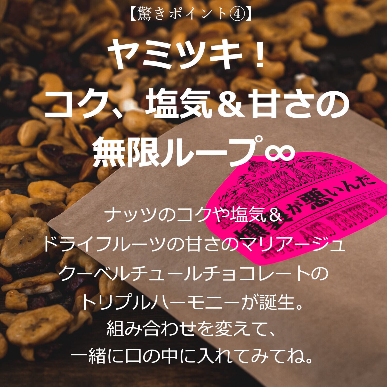 チョコレートの口どけ&ナッツのコク塩気&ドライフルーツの甘さ