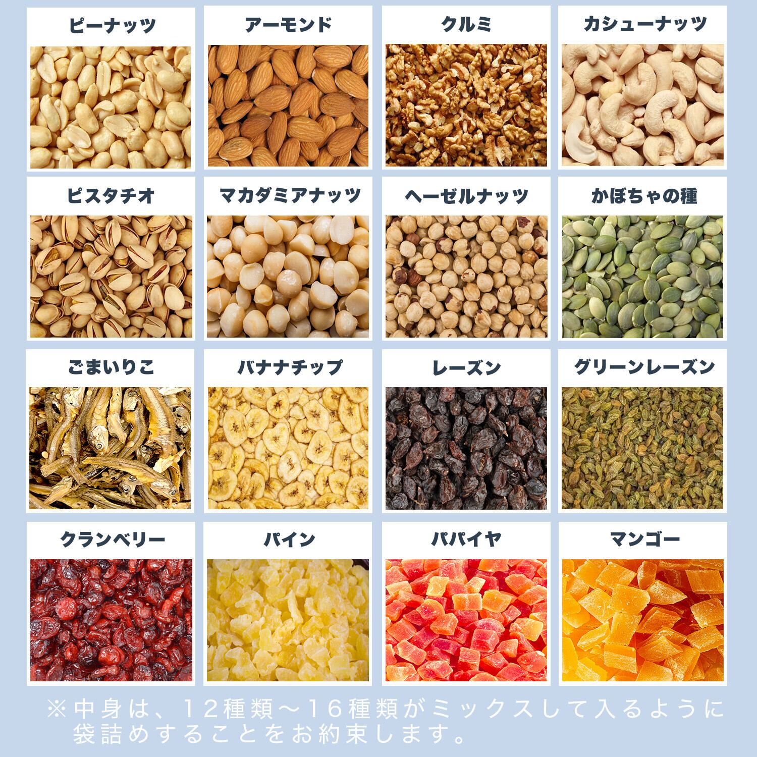 種類が豪華で豊富!約16種類のナッツ&フルーツをオリジナルでMIXしました。
