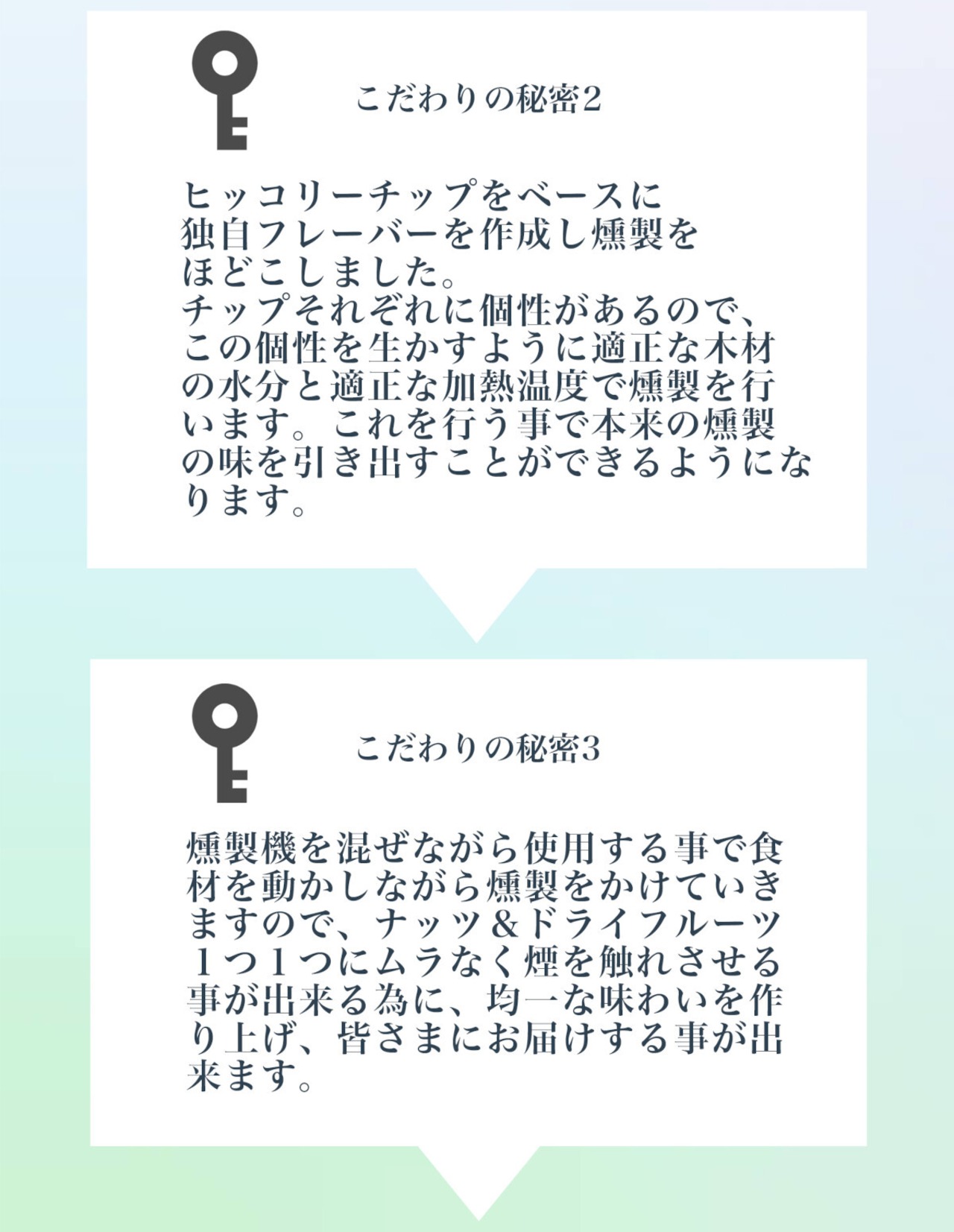 ストロング燻製!!燻香の強さとバランスにこだわった燻製好きの為のナッツです。